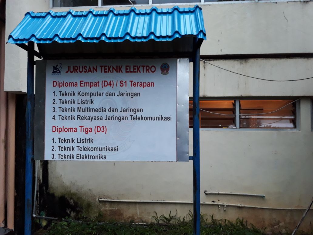| Tertera. D4 Teknik Rekayasa Jaringan dan Telekomunikasi telah tertera di papan nama prodi Jurusan Teknik Elektro, Rabu (18/4). [CAB/MTW] |