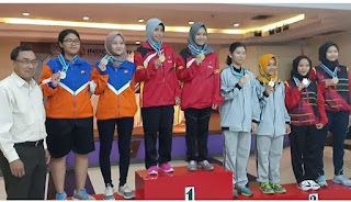 | Peraih medali emas cabang tenis meja (tengah) saat mengikuti porseni Politeknik se-Indonesia. [Ig: poltek_upg] |