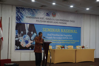 Seminar nasional hasil penelitian dan pengabdian kepada masyarakat 2018 dilaksanakan di Karebosi Condotel, Sabtu (10/11). Politeknik Negeri Ujung Pandang (PNUP) sebagai pelaksana kegiatan mengangkat tema “Penguatan inovasi penelitian dan pengabdian kepada masyarakat untuk meningkatkan link and match dengan industri”.