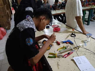 Perakitan Robot. Peserta Lomba dari Berbagai Sekolah Sedang Merakit Robot Karya Mereka di Gedung Elektro Politeknik Negeri Ujung Pandang, Sabtu (24/11/2018). [IHA/276]