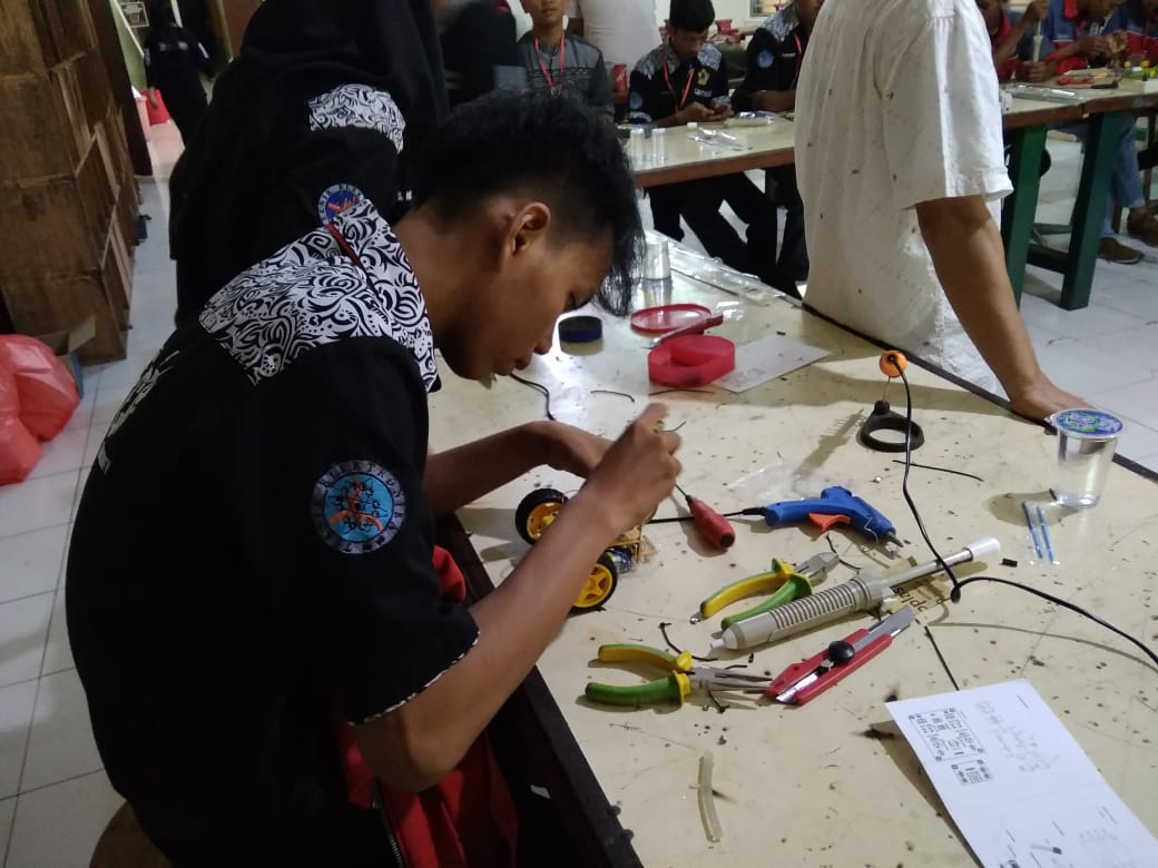 Perakitan Robot. Peserta Lomba dari Berbagai Sekolah Sedang Merakit Robot Karya Mereka di Gedung Elektro Politeknik Negeri Ujung Pandang, Sabtu (24/11/2018). [IHA/276]