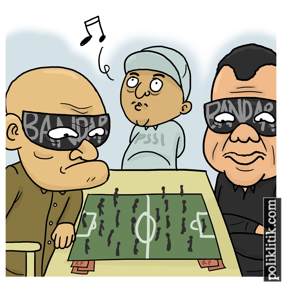 | Ilustrasi. Mafia bola/bandar sedang melihat pertandingan yang telah diatur agar tetap berjalan sesuai kesepakatan. [Sumber: poliklitik.com] |