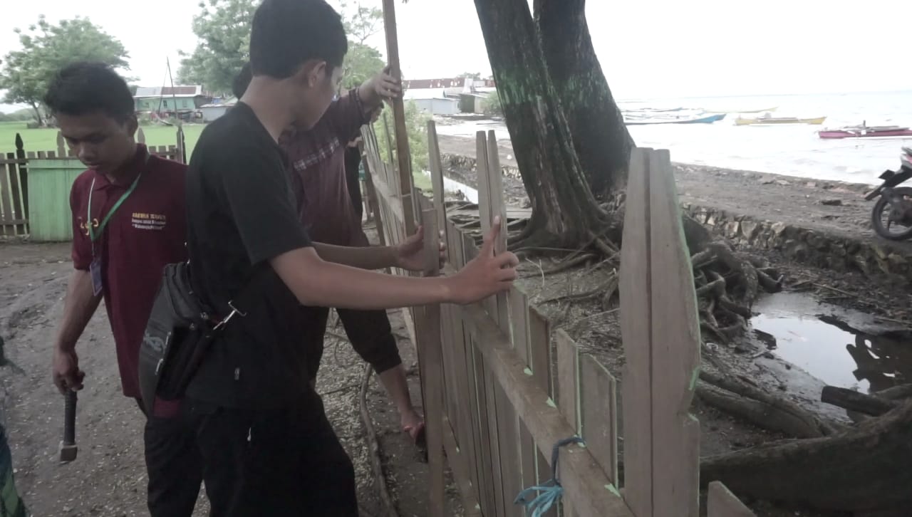 | Pembenahan. Mahasiswa melakukan pembenahan pagar. [Ist] |
