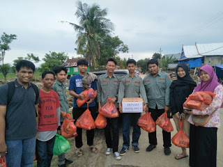 Mahasiswa Himpunan Mahasiswa Teknik Kimia (HMTK) Politeknik Negeri Ujung Pandang (PNUP) menyalurkan donasi berupa sembako dan peralatan mandi yang berasal dari dosen, alumni, dan mahasiswa teknik kimia, Sabtu (2/2).