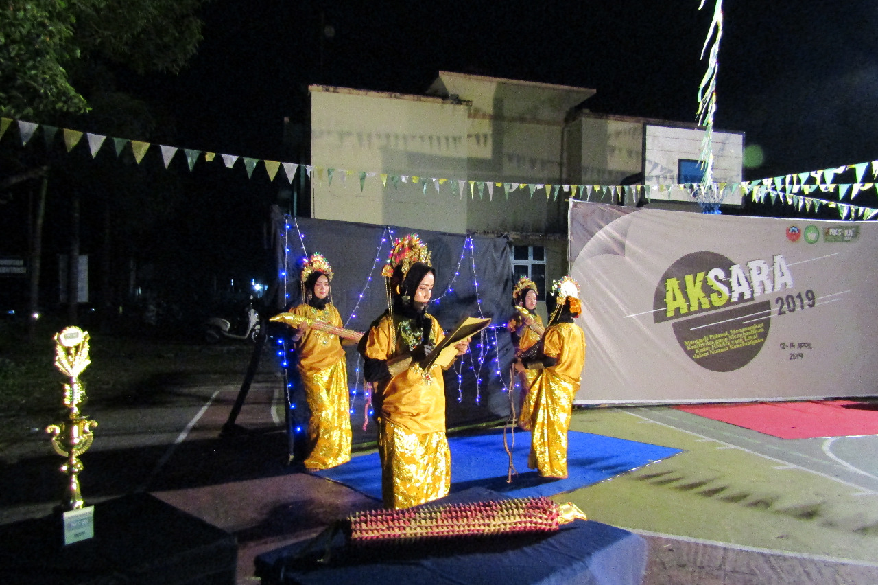 Malam Puncak. Penampilan perwakilan mahasiswa PDD BONE pada saat pembukaan malam puncak AKSARA 2019 di Lapangan Basket PNUP, Minggu (14/04).  [CAU/285]