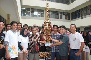 | Juara Umum. Penyerahan Piala Juara Umum di bidang Olahraga oleh Direktur PNUP kepada Teknik Elektro, Jumat (3/5). [CAU/285] |