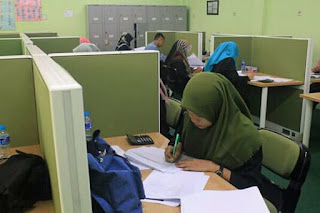 Suasana. Mahasiswa tampak sedang serius dalam mengerjakan Ujian Kompetensi di Jurusan Akuntansi PNUP, Selasa (23/4). [Sumber: facebook.com/PoltekNegeriUjungPandang]