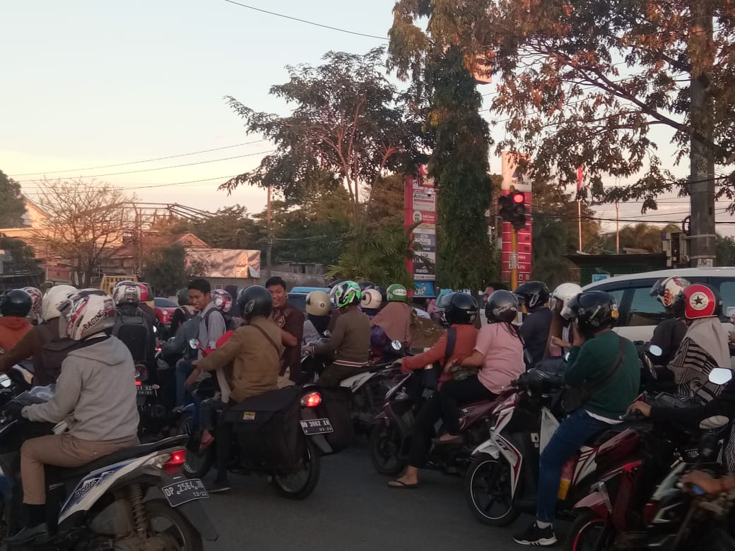 | Ramai. Terlihat keramaian dilampu merah pintu satu Universitas Hasanuddin saat KMBM membagikan takjil gratis kepada para pengendara, Selasa (28/05). [ist] |