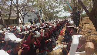 Makan siang. Suasana makan siang pada pendidikan bela negara di Kampus 2 PNUP, Rabu (28/8). [NHA/283] |