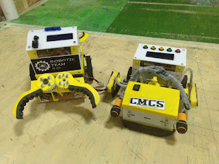 | Robot. Robot hasil buatan tim CMCS. Sebelah kiri manual, kanan otomatis, Minggu (26/09). [Ist] |