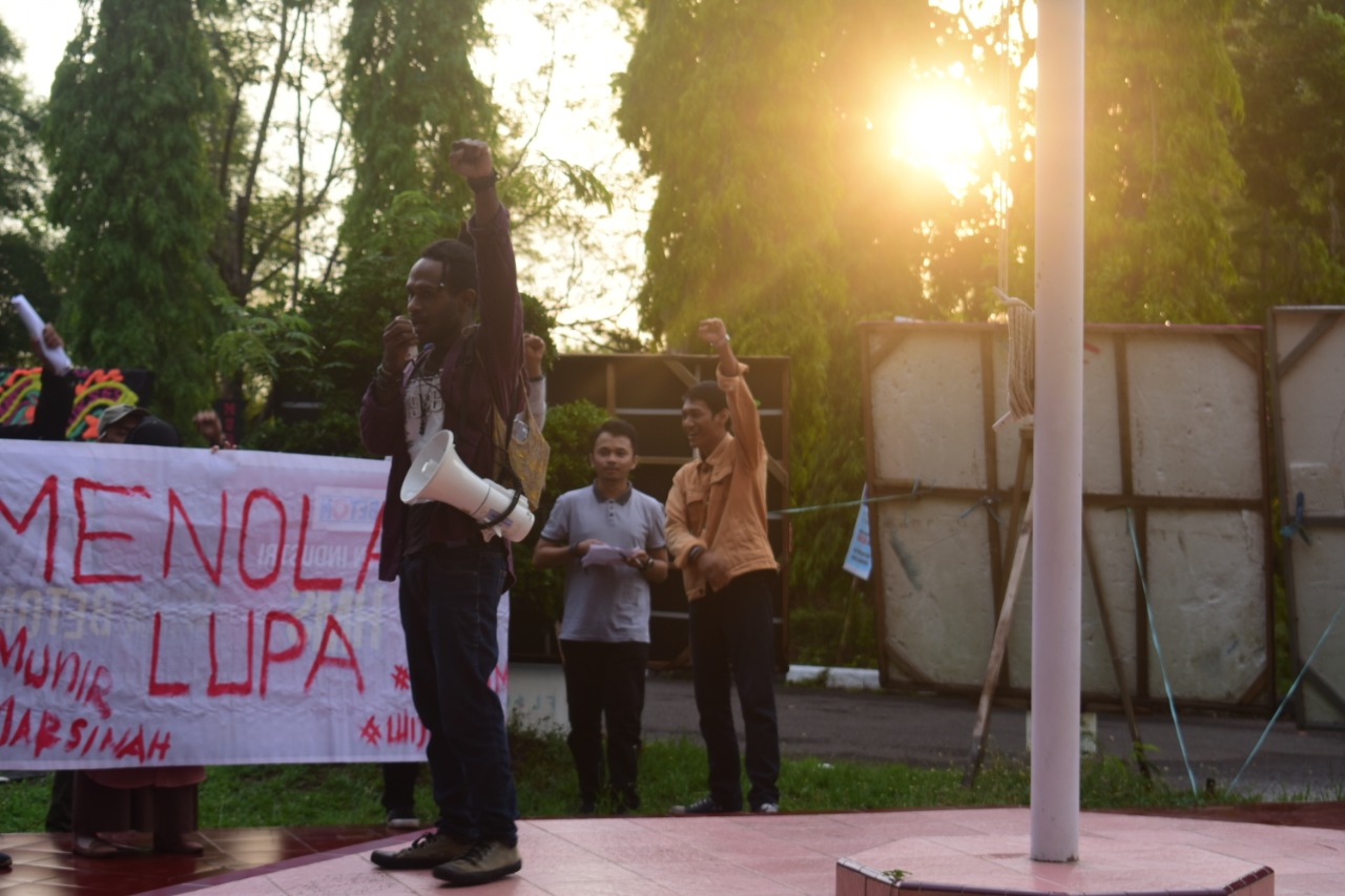 Massa dari aksi ini terdiri dari gabungan beberapa lembaga mahasiswa yang ada di PNUP. Bermodalkan alat pengeras suara, mahasiswa  melakukan orasi yang mengangkat isu terkait pelanggaran HAM di Indonesia salah satunya masalah di tanah Papua, serta menyuarakan hak-hak dan kewajiban mahasiswa PNUP.