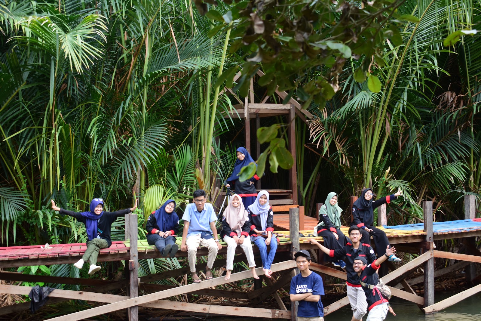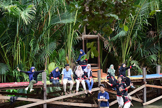| Beberapa mahasiswa sedang berswafoto di atas dermaga pelangi. [ZAK/308] |