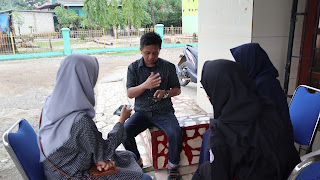 | Wawancara. Mahasiswa dari Politeknik Negeri Ujung Pandang saat melakukan wawancara dengan Lurah Kecamatan Kalabbirang. [BUL/281] |