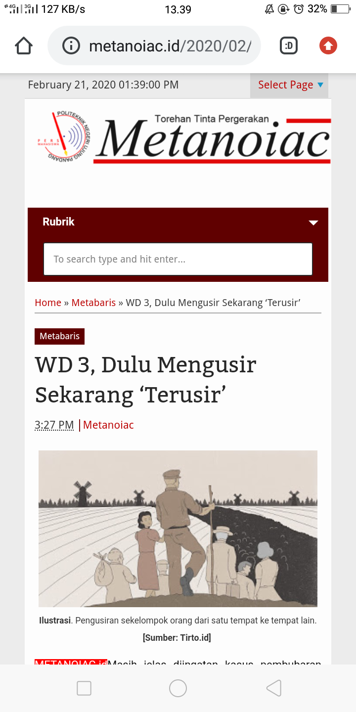 Screenshoot. Bukti screenshoot berita yang di publish oleh website Metanoiac.Id, Jumat (21/2). [INK/296]