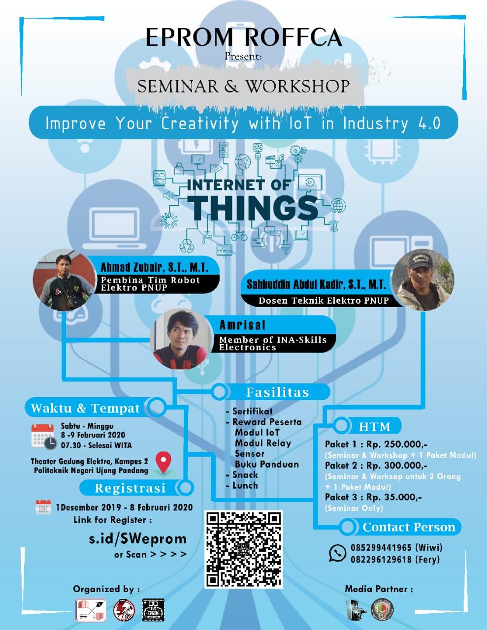 Muhammad Fahrul Hasan selaku Ketua II HME menjelasan bahwa kegiatan tersebut merupakan kegiatan mahasiswa Jurusan Teknik Elektro yang diwadahi langsung oleh pihak HME. Seminar dan Workshop yang bertema “Improve Your Creativity with loT in Industry 4.0” itu digelar pada tanggal 8-9 Februari 2020 di Teater gedung Jurusan Teknik Elektro kampus dua PNUP. Kegiatan tersebut diadakan oleh HME dan EPROM sebagai pelaksananya.