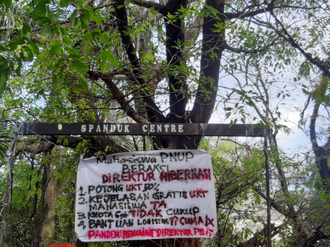| Tuntutan. Spanduk tuntutan yang terpasang di Spanduk Centre , Senin (15/6). [Ist] |