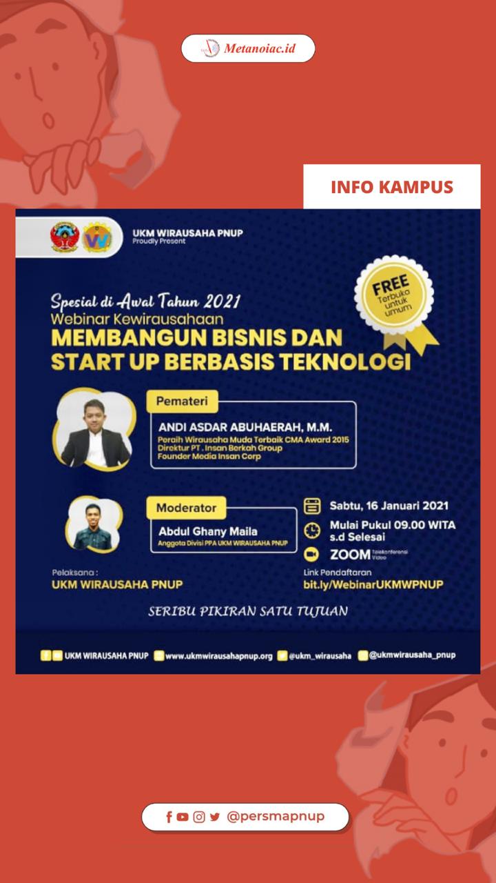 METANOIAC.Id Salah satu Unit Kegiatan Mahasiswa (UKM) Politeknik Negeri Ujung Pandang (PNUP) akan menggelar Web Seminar (Webinar) Spesial di awal tahun 2021 tepatnya pada tanggal 16 Januari 2020.