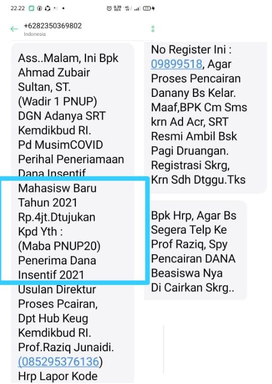 “Saat mendapatkan pesan tersebut, saya konsul dulu dengan teman karena kemarin juga ada edaran kalau terdapat penipuan sehingga saya tidak respon,” ucapnya saat dimintai keterangan via Whatsapp sekitar pukul 21.00 WITA.