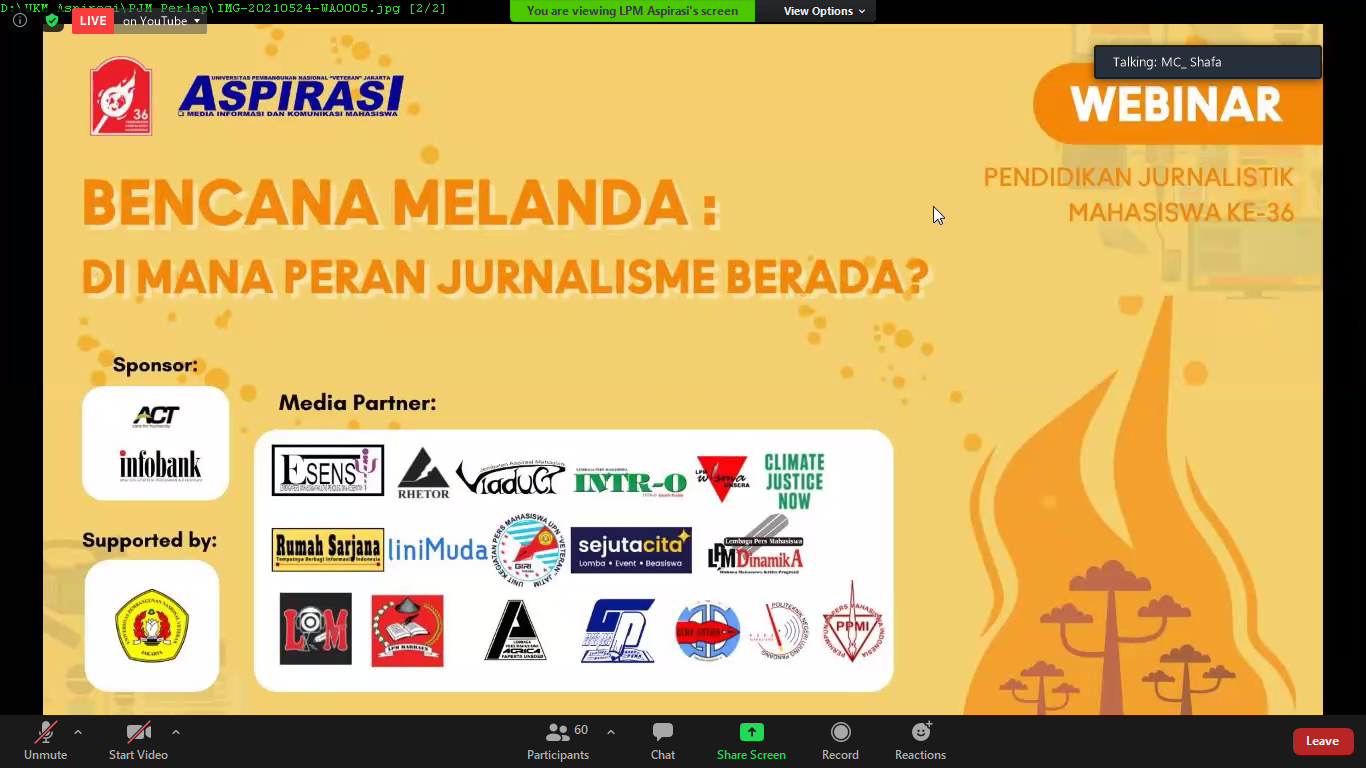 Webinar dengan tema “Bencana Melanda: Dimana Peran Jurnalisme Berada?” ini dihadiri sekitar 90 hingga 100 orang dengan kategori peserta umum via Zoom Meeting.