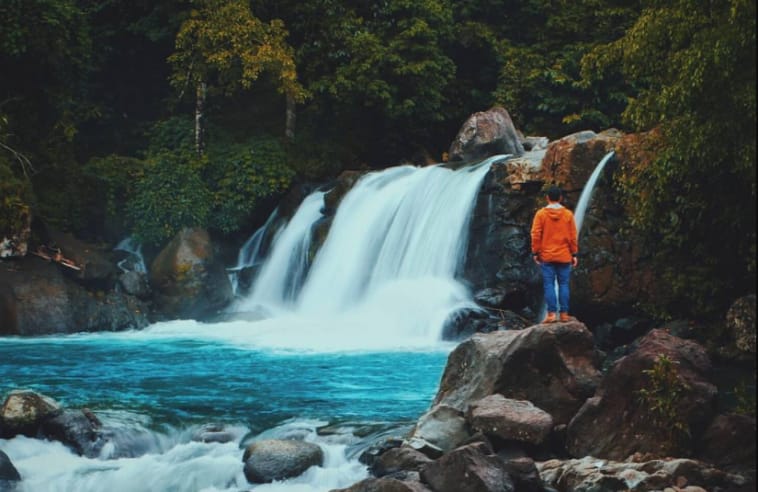 Pemandangan disekitar air terjun masih sangat asri dan terkesan masih alami. Bebatuan yang berada disekitar air terjun memberikan kesan alami karena tata letak bebatuan terbentuk oleh kondisi geografis alam. Sepanjang jalan menuju lokasi banyak pemandangan yang bisa dinikmati keindahannya dan juga bisa diabadikan untuk memenuhi kebutuhan media sosial. Sayangnya, fasilitas masih kurang sehingga akses untuk kesana masih sangat terbatas.