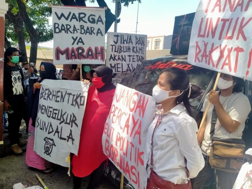 “Kami warga Bara-Baraya menolak penggusuran yang terjadi di Bara-baraya. Di mana kami telah tinggal selama berpuluh-puluh tahun. Namun ada mafia tanah yang ingin langsung mengambil tanah tempat tinggal kami,” keluh seorang warga Bara-baraya.