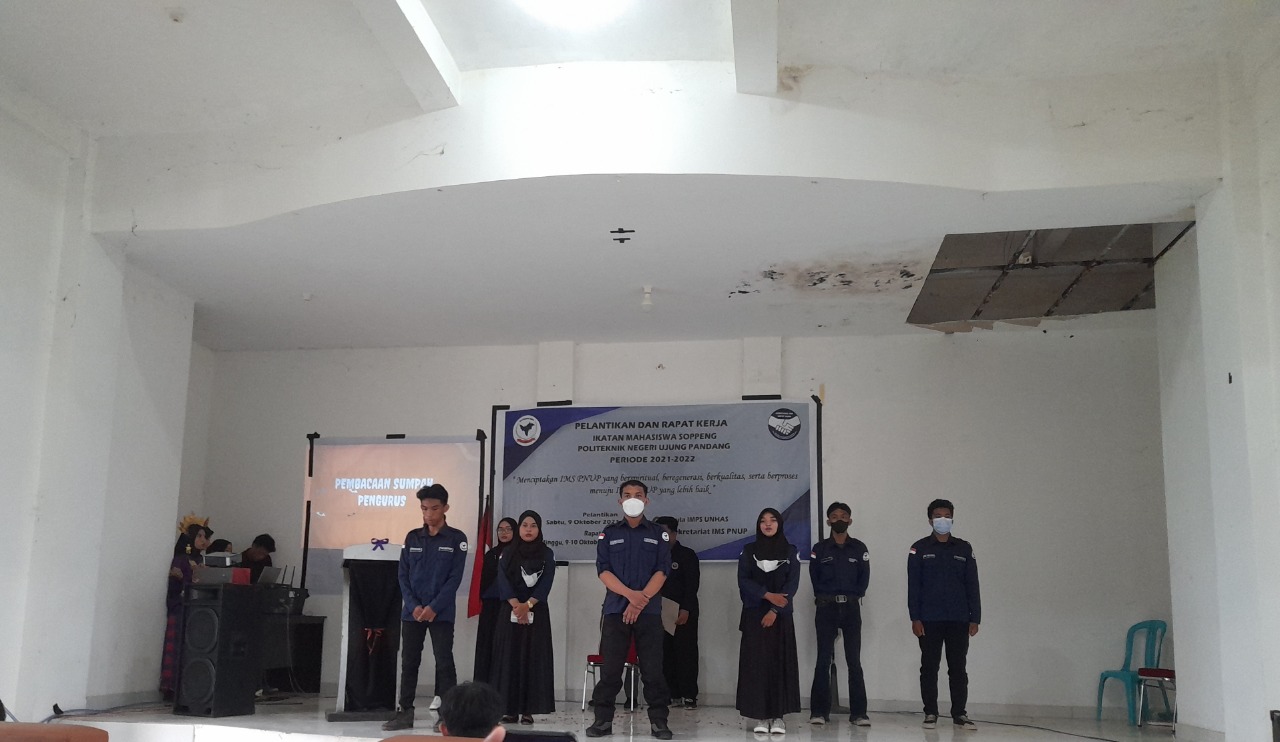 METANOIAC.id Bertempat di Aula IMPS UNHAS, Pengurus Harian Organisasi (PHO) dan Dewan Pengawas Organisasi (DPO) Ikatan Mahasiswa Soppeng Politeknik Negeri Ujung Pandang (IMS PNUP) resmi dilantik pada Sabtu (9/10).