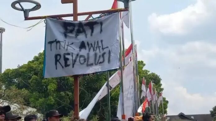 METANOIAC.id Ribuan warga Kabupaten Pati yang tergabung dalam Aliansi Masyarakat Pati Bersatu menggelar aksi demonstrasi besar-besaran di depan Kantor Bupati Pati, Rabu (13/8). Massa menuntut Bupati Sudewo mundur dari jabatannya meskipun sejumlah kebijakan kontroversial yang sempat memicu gejolak telah dibatalkan.