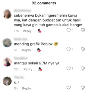 Komentar Netizen terkait biaya film kartun “Merah Putih One For All”. Sumber: tiktok.